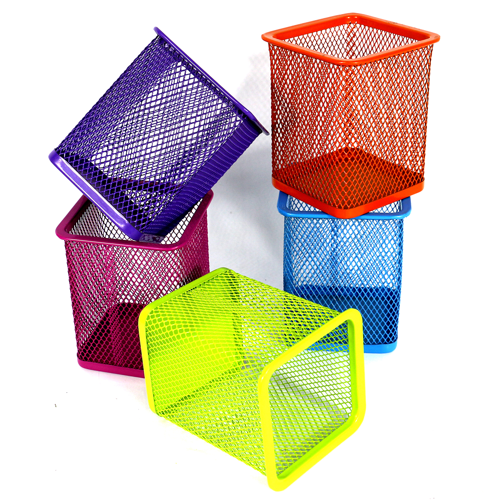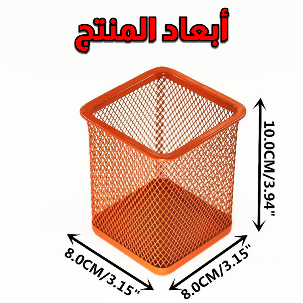 حامل أقلام معدني شبكي ، مصنوع من المعدن، مربعة الشكل ، ياتي بالوان متعددة